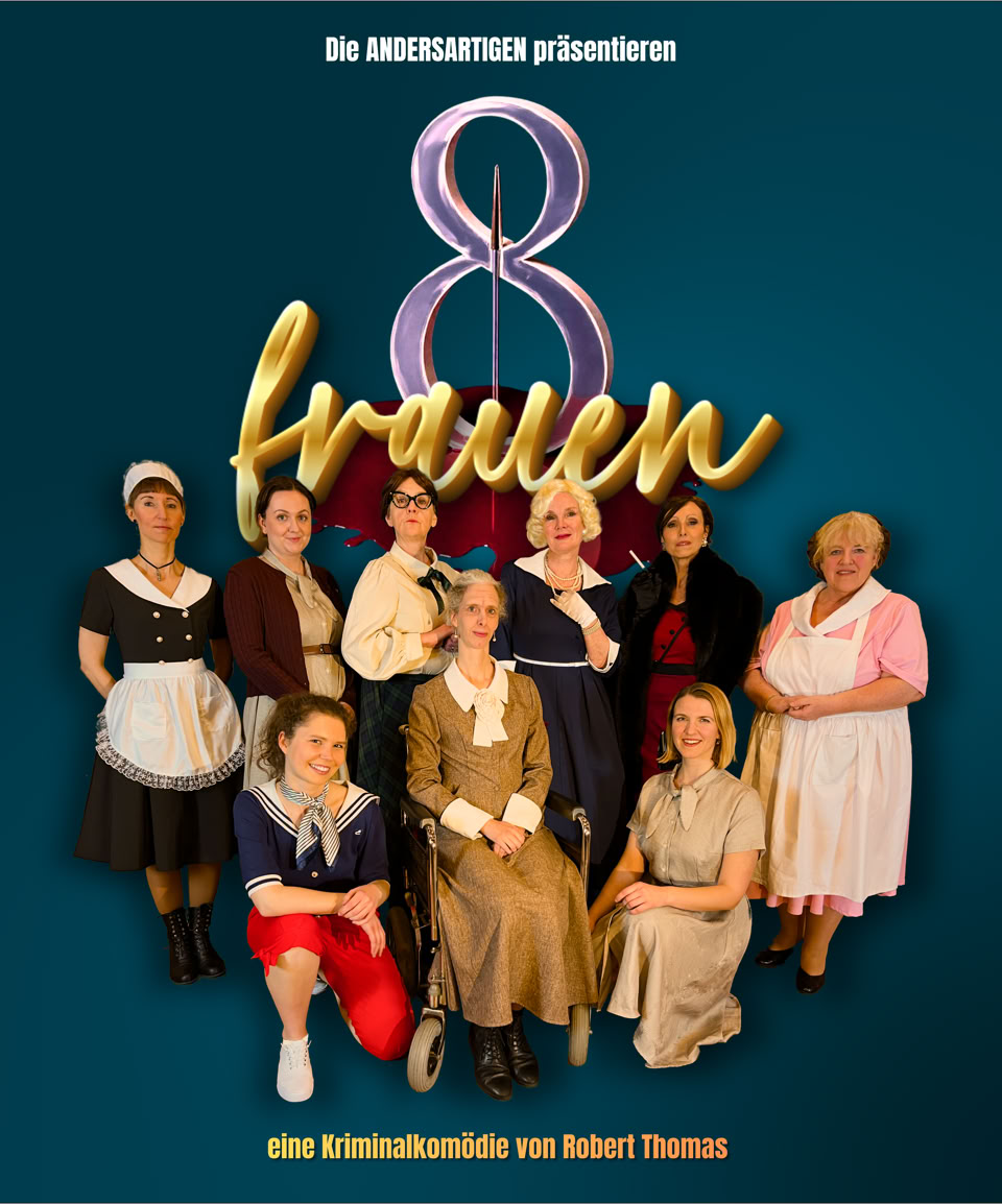 am 01. Mai 2026 ist es endlich soweit und mein 2025 gegründetes Theater-Ensemble DIE ANDERSARTIGEN haben dann endlich ihre Premiere mit „DIE 8 FRAUEN“ im Kellertheater Frankfurt - mehr Informationen und Termine hier!
