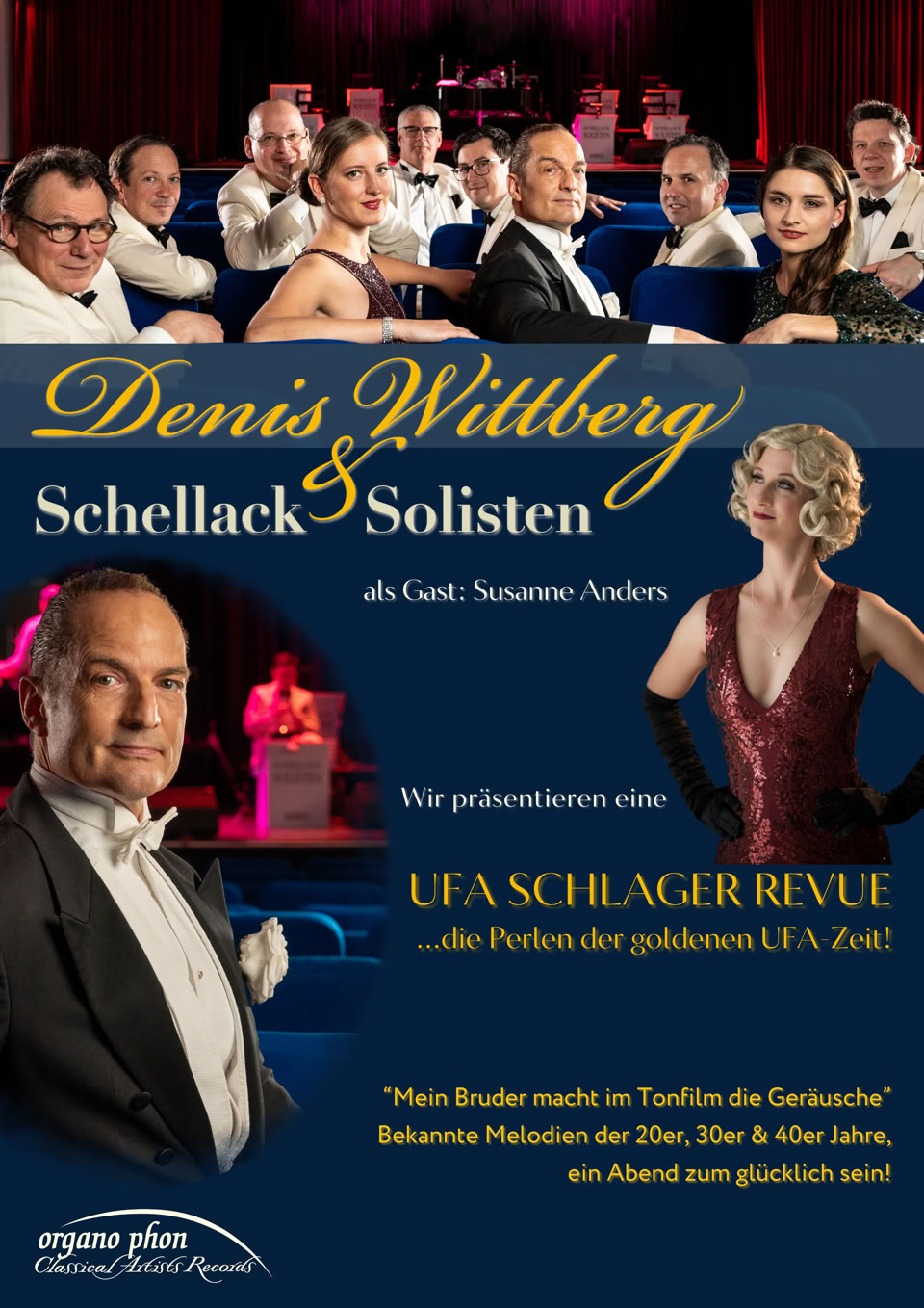 unsere ersten beiden UFA-Schlager Revue Konzerte mit Denis Wittberg & seinen Schellack Solisten im August 2025 waren ein voller Erfolg! Deshalb gibt es auch für Mai und Oktober 2026 weitere Termine - Infos und mehr dazu HIER! - mit Musik der 20er,30er, 40er Jahre mit Live Orchester und in Farbe.